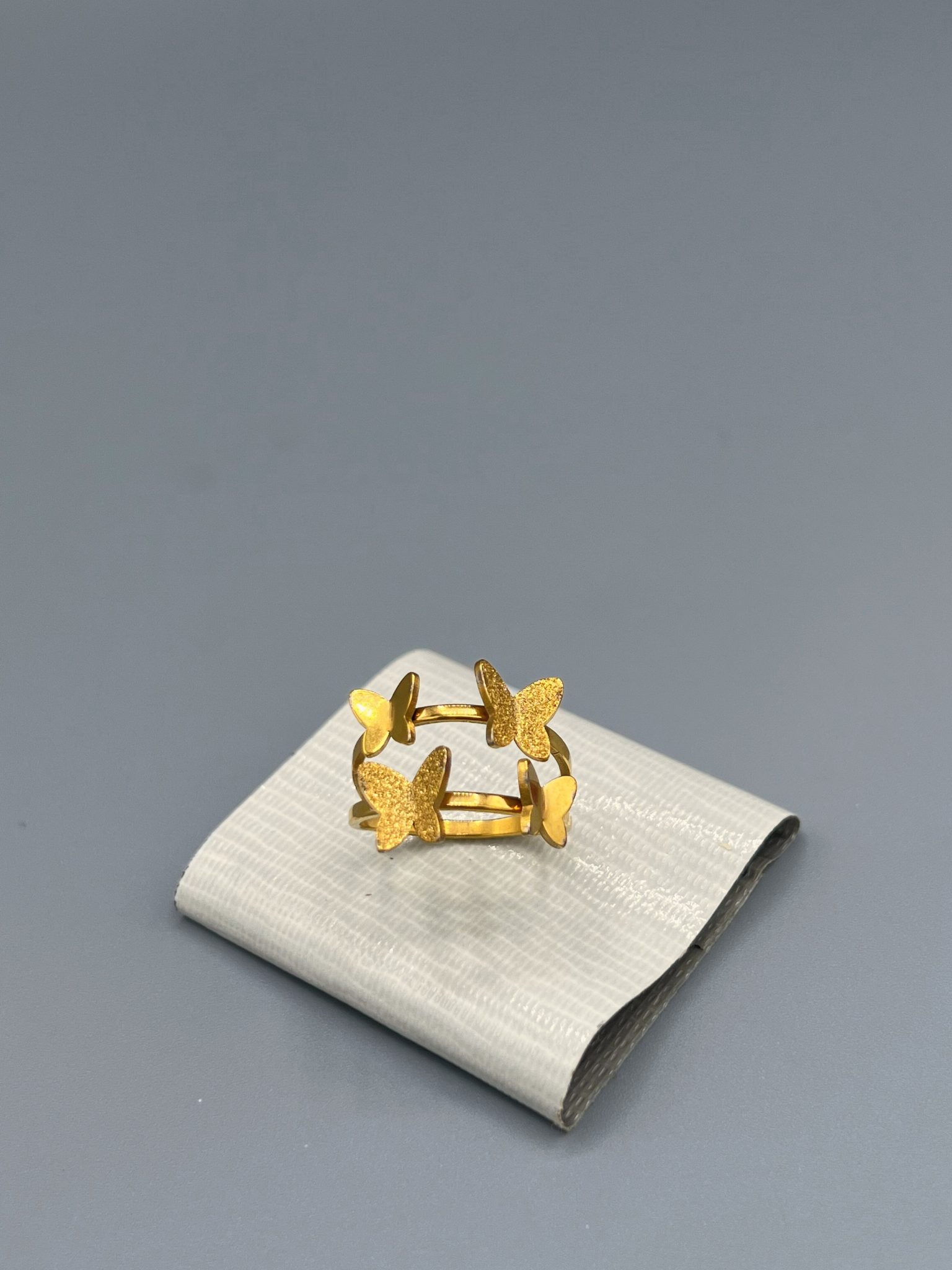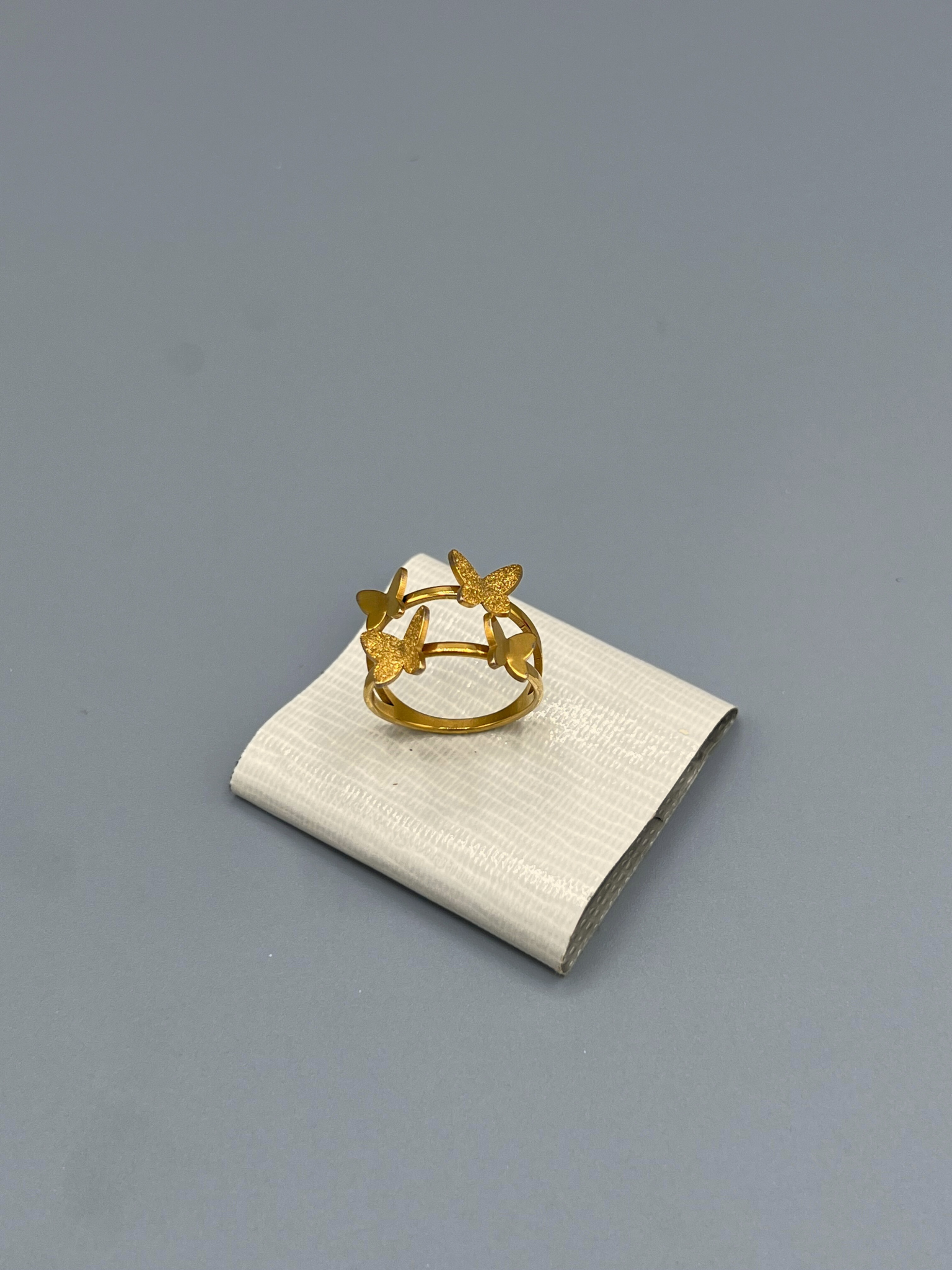 Design: Open band ring adorned with delicate butterfly motifs all around