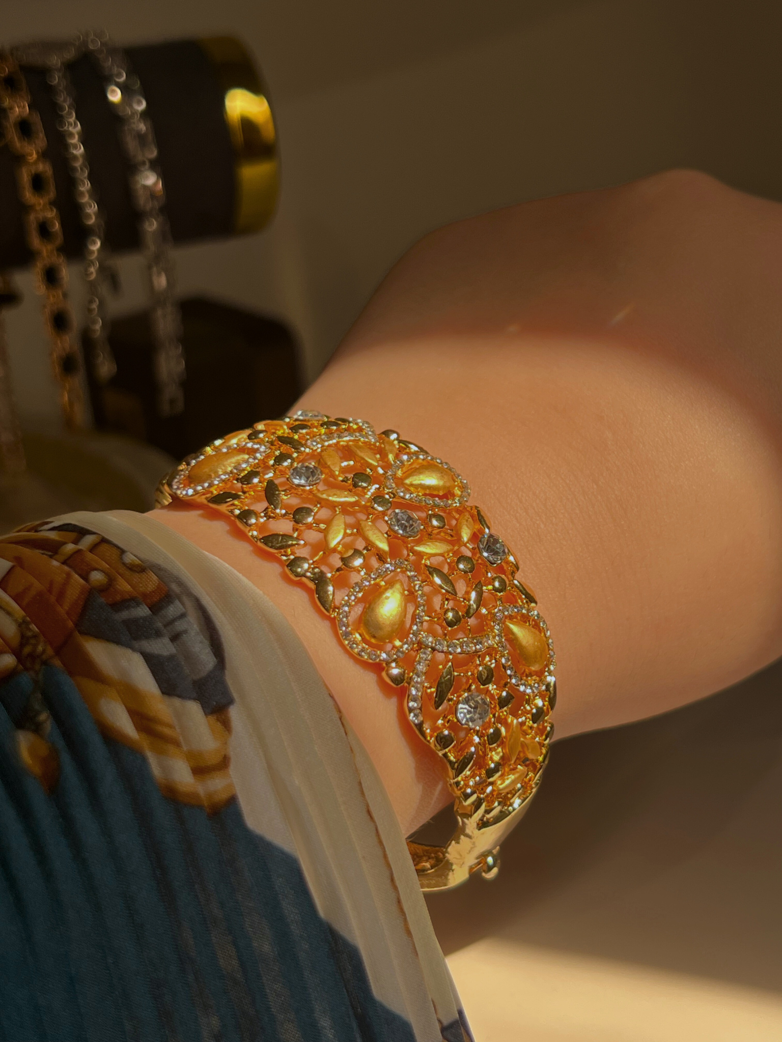 Design: Handcrafted floral and paisley pattern with crystal detailing